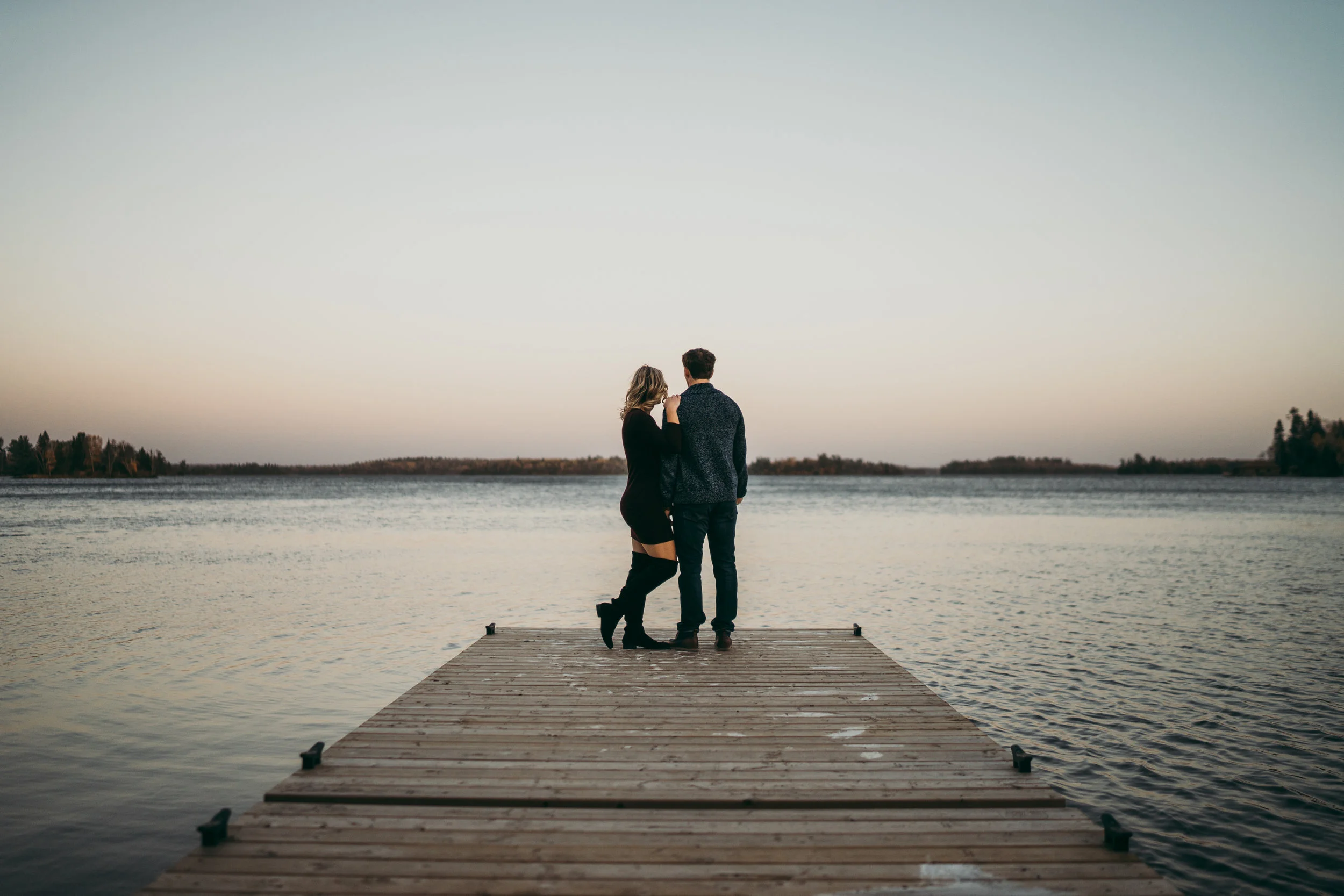 I knew these two would be a good time the moment I met them for coffee to chat about their wedding we hit things off pretty good!. I made my way out to Kenora for their engagement photo's. I was kindly greeted with a gin and tonic (hard to say no to that) we were also greeted with 90km/h winds! The wind sure added a bit of craziness to the shoot, but we didn't let it stop us. We hiked some trails, found some beautiful spots, and beautiful light, and finished up back in town with a few photo's in the dark.